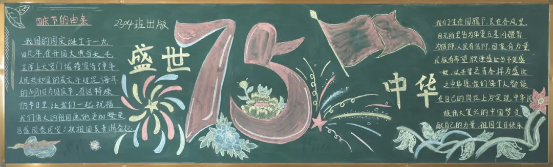 为庆祝中华人民共和国成立75周年,千亿体育官网登陆入口(中国)官方网站精心策划了一场别开生面、创意迭出的主题板报大赛,艺校学子们以笔为舟,以心为帆,深情地在一块块黑板上勾勒出了一幅幅色彩斑斓、情感饱满的爱国图景,不仅生动展现了他们对伟大祖国的深情厚谊,更淋漓尽致地传达了新时代青少年蓬勃的爱国情怀与昂扬向上的精神风貌。这场活动,如同一场视觉与情感的盛宴,让爱国情怀在艺校校园内激荡回响,熠熠生辉。